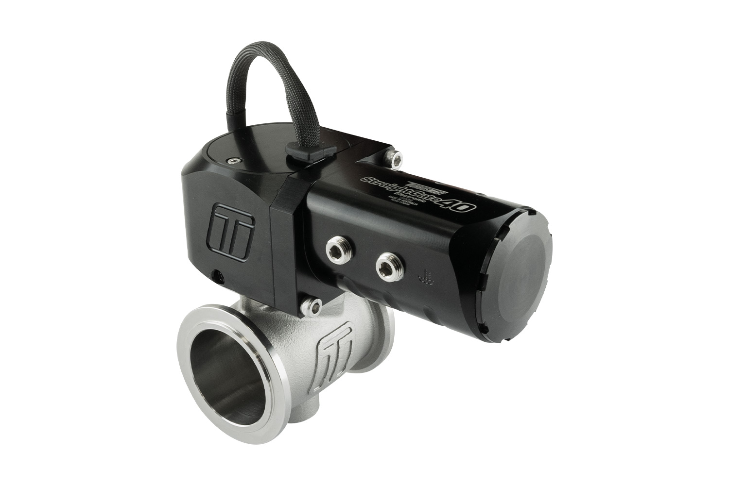Turbosmart’s eSG40 Electronic StraightGate is Patent Pending and builds on the success of the Multiple Award-Winning, World-First eSG50 Electronically Actuated Butterfly-Style External Wastegate. With no reference hoses, springs, or diaphragms, it provides full electronic control through a servo motor and Turbosmart’s zero-backdrive gearbox. This design reduces current demands and ensures operational stability even against high drive pressures. The Electronic StraightGate40 includes onboard sensors for actuator temperature and valve position in both analog and digital formats. Electronic actuation allows for the widest possible tuning window, from zero boost (if manifold priority allows) to all available boost.